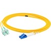 This is a 2m angled LC (male) to angled SC (male) yellow simplex riser-rated fiber patch cable. OS2 is a standard single-mode optical fiber commonly used with wavelengths of 1310nm and 1550nm (9/125 microns), and has a maximum attenuation of 1dB/km. The OS2 standard is defined in ISO/IEC 11801. This optical fiber, nonconductive, riser (OFNR) cable is best suited for use in interior fiber-optic applications. A simplex cable is a single strand of fiber that works best with bi-directional transceivers as well as other single-transmitting devices. Our patch cables are 100% compliant for all of your networking needs. Our products are guaranteed by federal law to not affect or void OEM warranties.