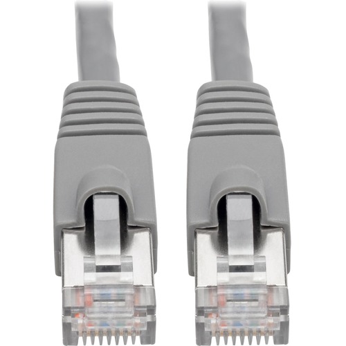 The N262-003-GY Cat6a 10G-Certified Snagless Shielded STP Network Patch Cable (RJ45 M/M) is recommended for transmitting 10 Gbps data, voice and video through high-speed 10G equipment, including network switches, modems, routers, adapters, hubs and patch panels. It also connects PoE devices, such as VoIP phones, security cameras and point-of-sale kiosks.